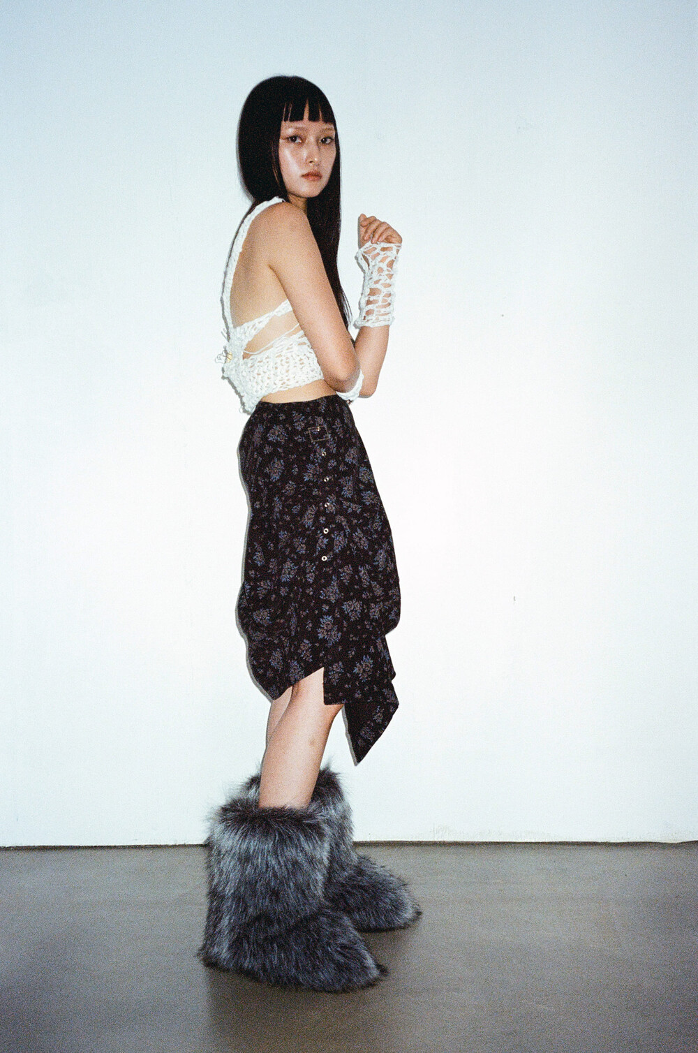 Floral Pattern Corduroy Skirt
